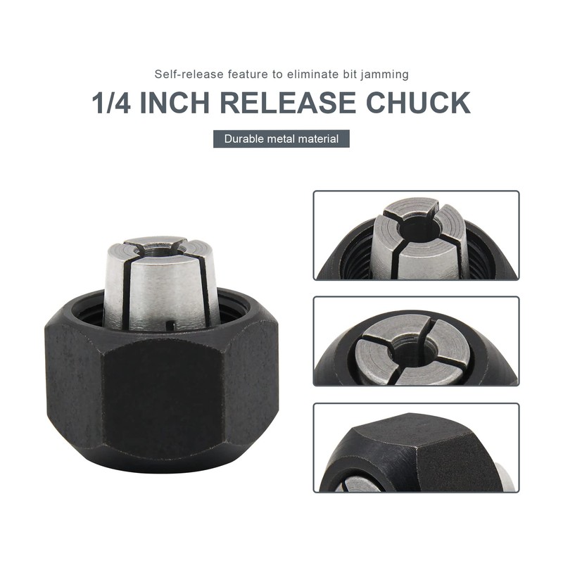 - Extra-long 8-segment collet design minimizes vibration and ensures bits run true