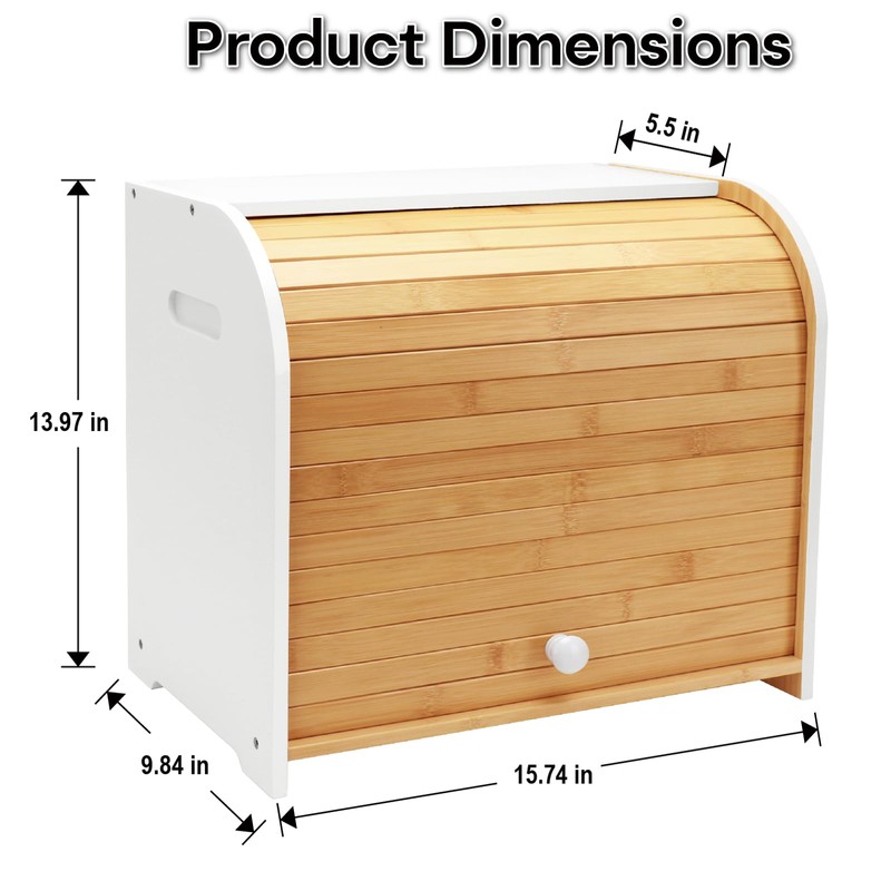 • 3-Position Adjustability: This bamboo wooden breadbox organizer provides three adjustable storage heights, thanks to its repositionable middle shelf that adapts to your needs, and can be removed at any time to be used as a bread cutting board or to place food.