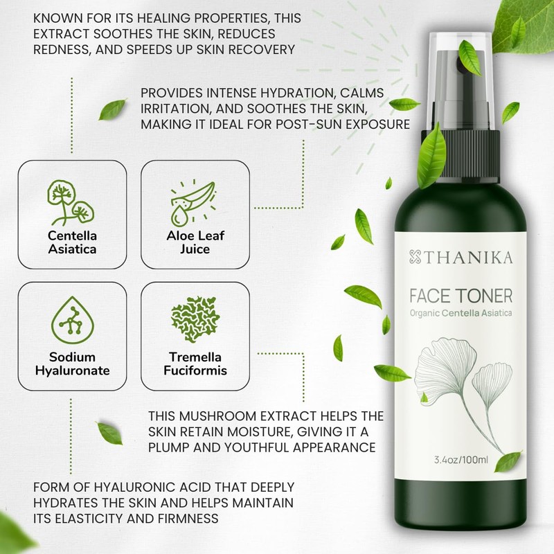 THANIKA Centella Asiatica Face Toner Spray - Anti-Aging & Acne Prone Skin 3.4 fl oz