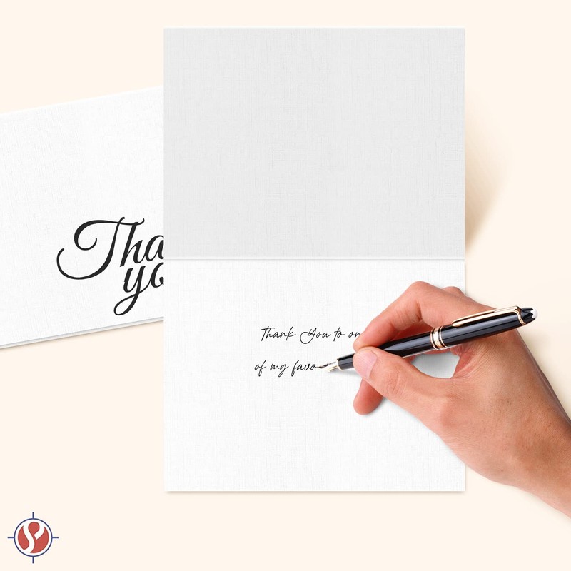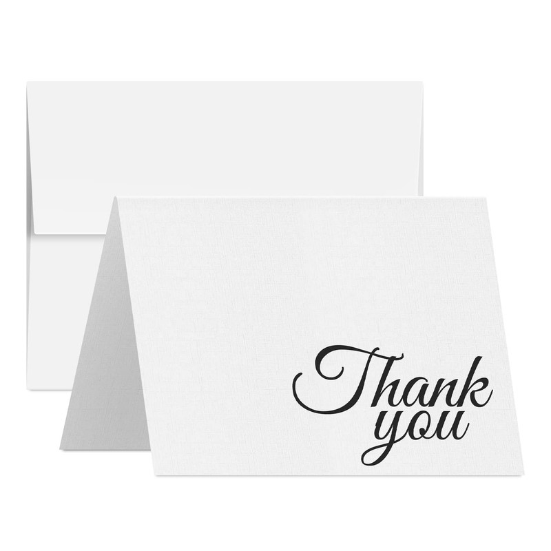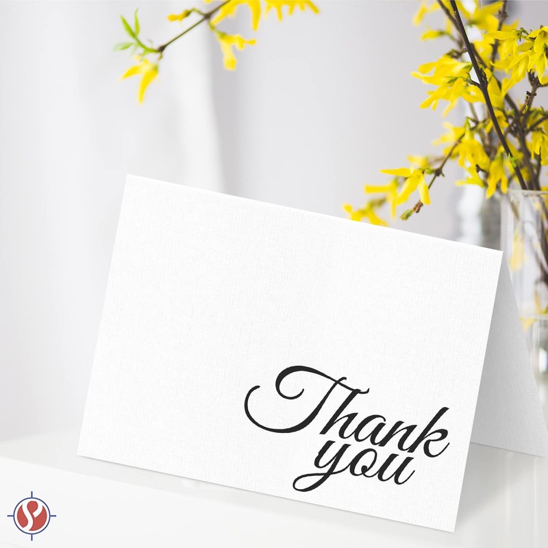 Thank You Greeting Cards and Envelopes – Elegant Linen Textured Fold Over Greetings for Wedding, Christmas, Valentine’s, Anniversary – Blank Inside | 4.5 x 5.5” (A2) | 25 per Pack
