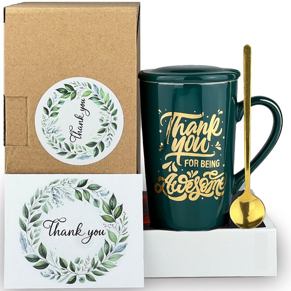 Thank You Mug - Small Thank You Gifts For Being Awesome - Funny Gifts Ideas For Women Friends, Coworkers - Coworker Gift -Thank You Mugs For Women 14oz and Thank You Cards with Scoop-Green spoondrift