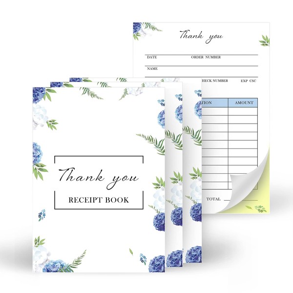 Thank You Receipt Book with Carbonless, Sets of 3, for Small Businesses - Convenient 3.93 x 5.51 inches, 50 Sheets 2-Part Carbon Copies, for Client Impressing and Gratitude