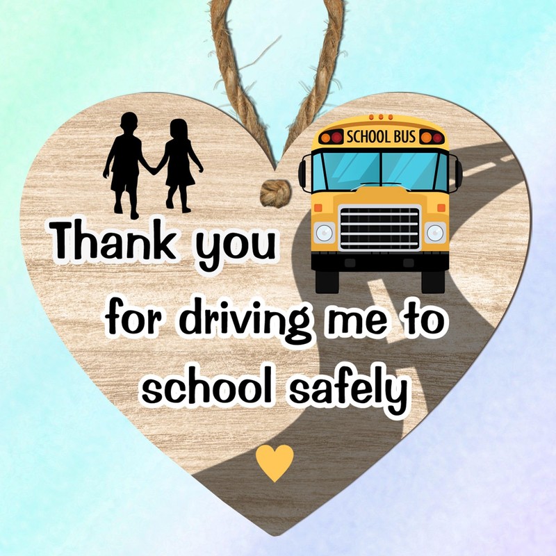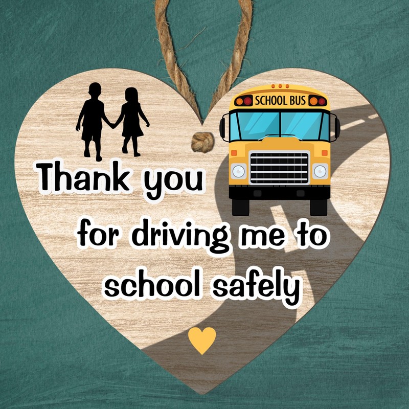 - ❤️ Thank You School Bus Driver Plaque: Features "Thank you for driving me to school safely" in a heart-shaped design with a rustic finish, showcasing a vibrant school bus and children graphic printed on the front only. This plaque is a perfect expression of gratitude from school kids to their driver that celebrates their daily efforts with warmth and care, crafted to inspire smiles and appreciation every time it’s seen.