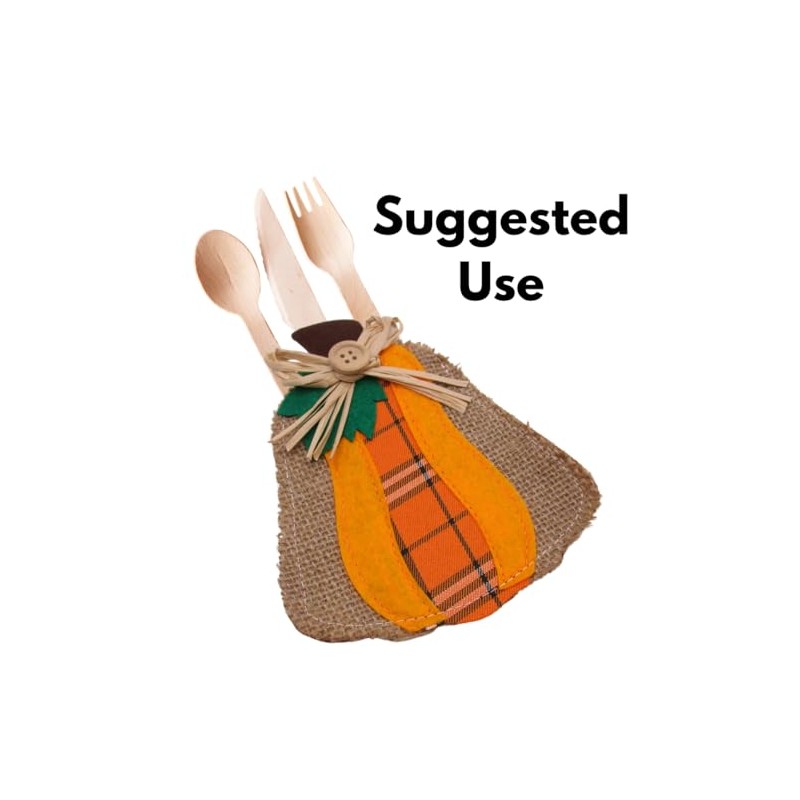Thanksgiving Fabric Cutlery Holders in Harvest Theme Shapes - Pack of 4 (Pumpkin)