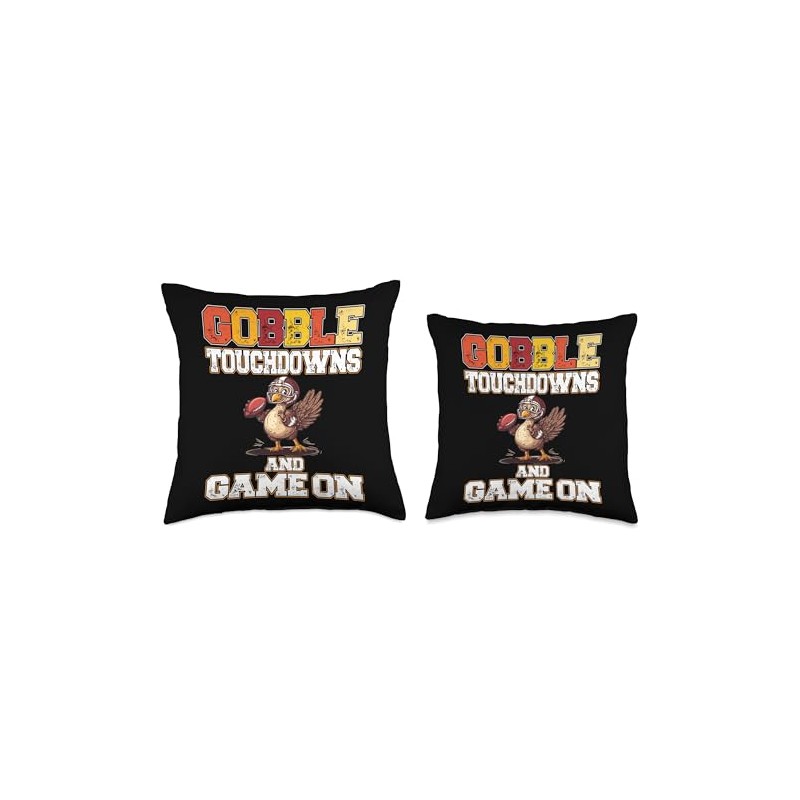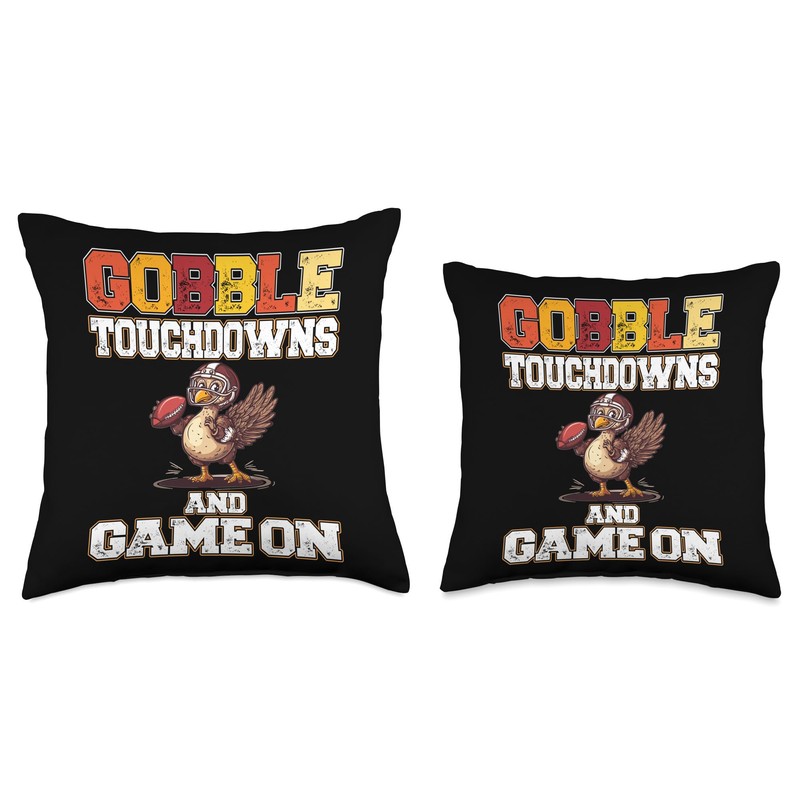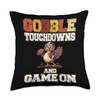Thanksgiving Football Turkey Gobble Touchdowns and Game on Throw Pillow