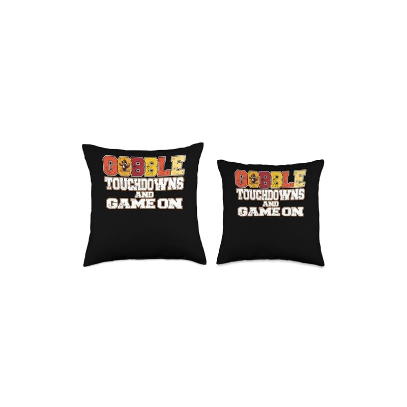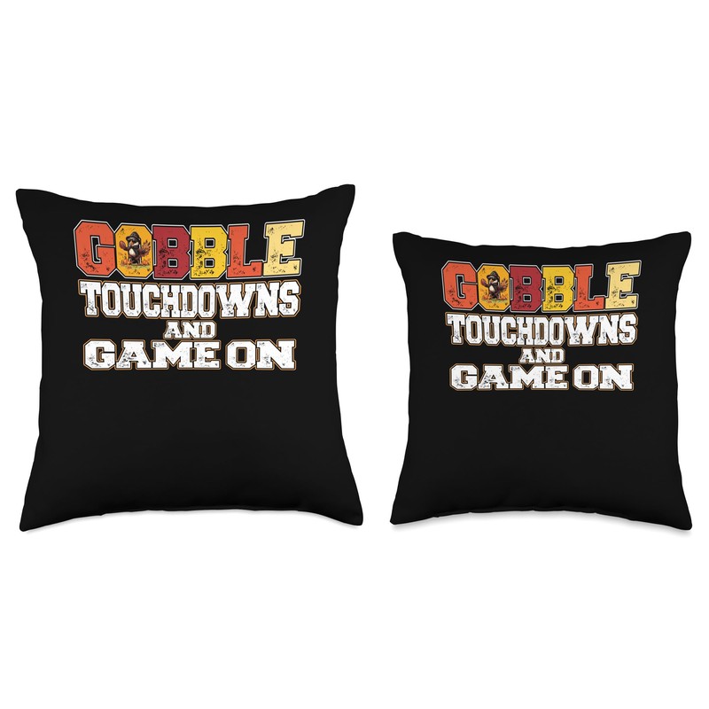 Thanksgiving Football Turkey Gobble Touchdowns and Game on Throw Pillow