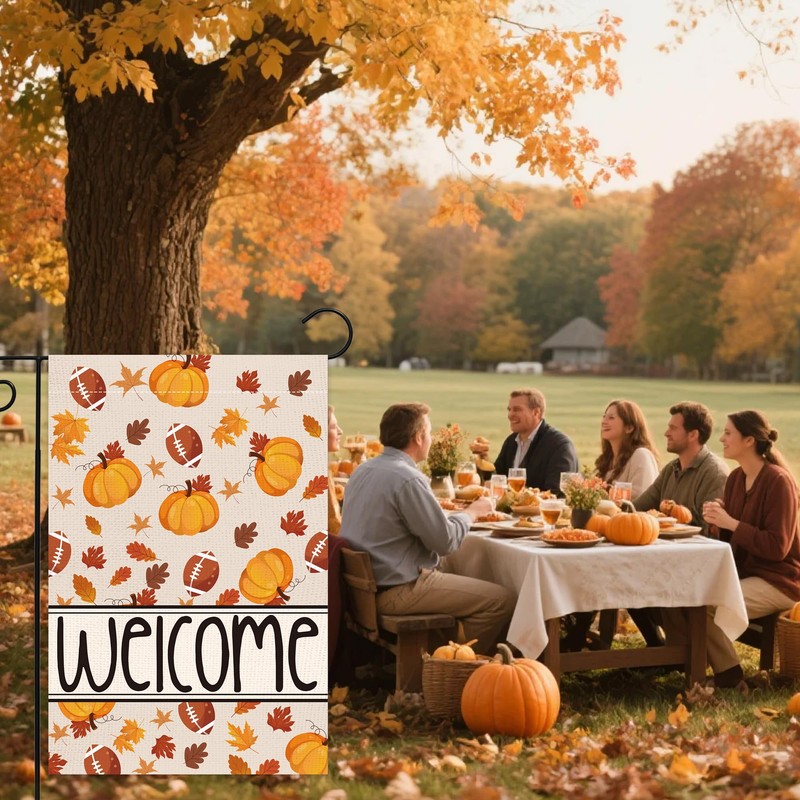 - The Thanksgiving Garden Flag is made of high-quality material,polyester fabric,durable and reusable ,which is not easy to wrinkle or fade.