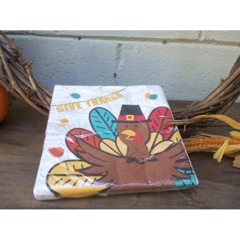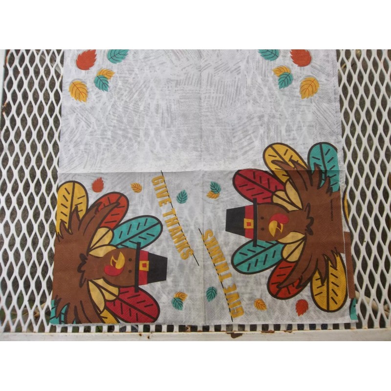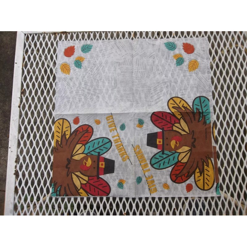 These Fall give thanks napkins are full of Autumn colors for your next fall decoration. it will be good for decoupage, mixed media or collage art projects. The design covers the whole napkin giving you optimum coverage for your project. There are 24 single napkins 2 ply 12.8'' by 12,7''.Thank you. |