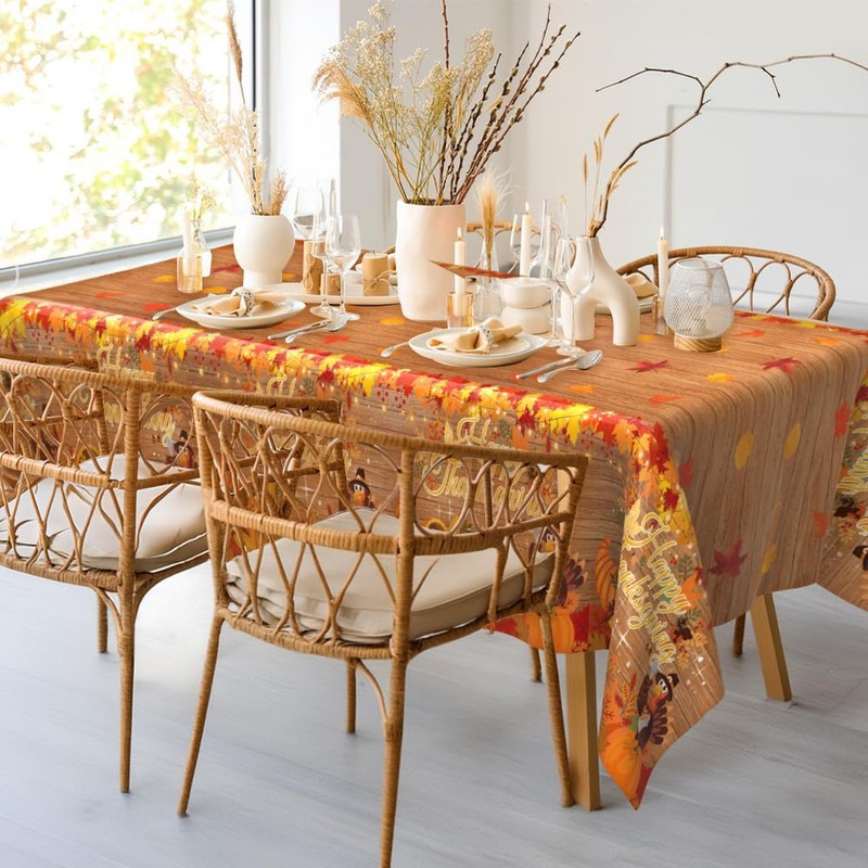 - Material: The thanksgiving tablecloths are made of high quality vinyl plastic, opaque and water and oil resistant, suitable for all styles and colours rectangular table, decorate your Thanksgiving