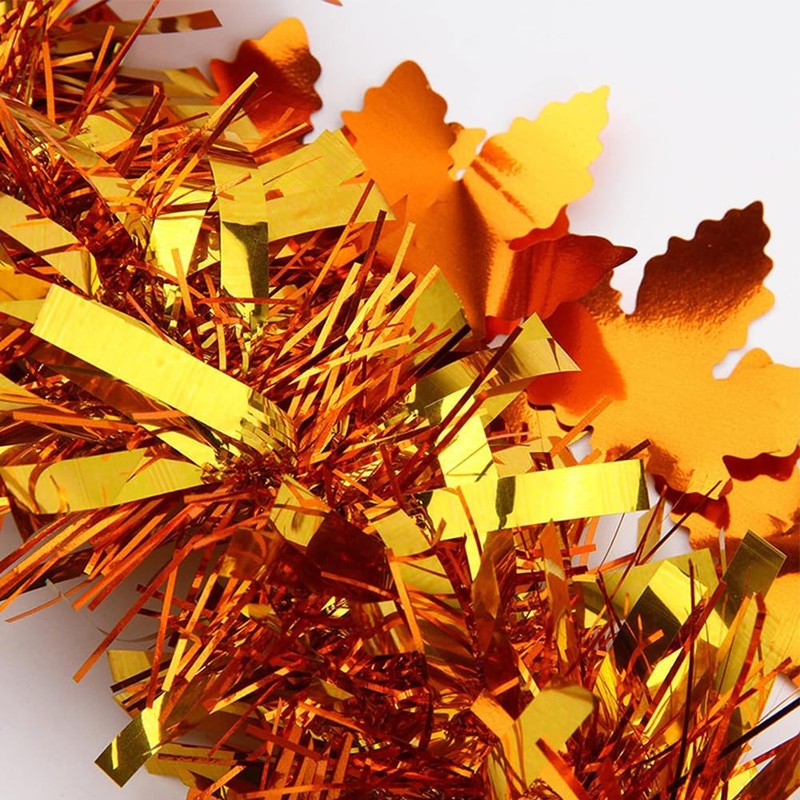 - Vibrant Bronze Gold Light-Reflecting Magic: Interwoven metallic tinsel and maple leaf sequins create dazzling light effects indoors and outdoors. Use as classic party decor or craft unique accessories like table runners, wreath accents, or autumn jewelry.