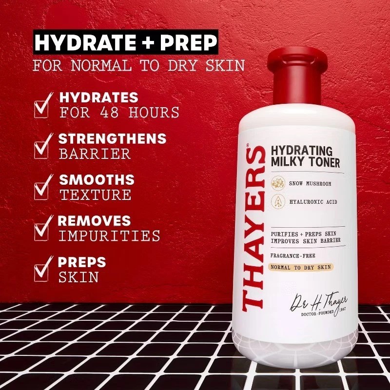 Thayers Hydrating Toner: Thayers milky hydrating toner delivers 48 hours of moisture leaving skin feeling soft, cushioned and hydrated; Thayers Milky Toner redefines toning with 35% boosted hydration levels while removing impurities and prepping skin