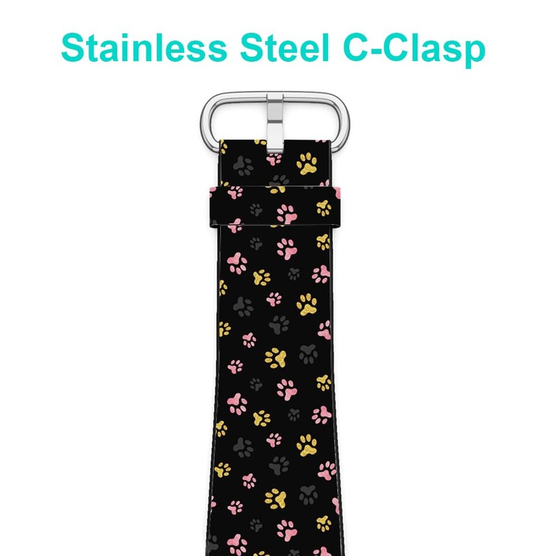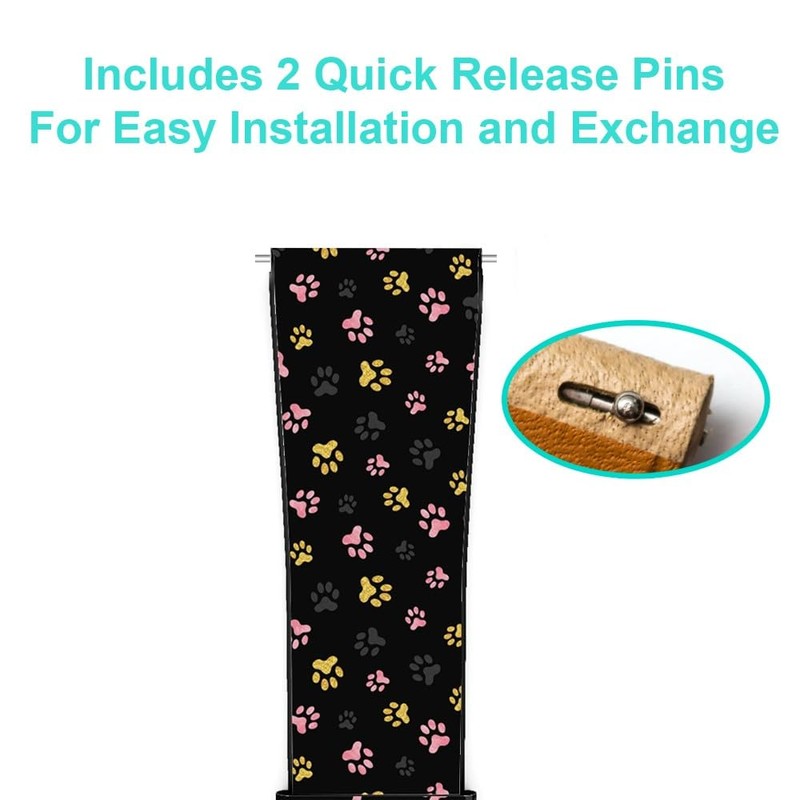 THAZEE Compatible with Ticwatch Pro 3 Ultra GPS/Pro 3 GPS/Pro 4G LTE / E2 / S2, 22mm Replacement Leather Watch Band (Dog Paw Print) Smartwatch Strap Bracelet