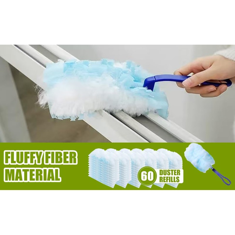 - Effortlessly clean hard-to-reach areas with our 60pcs feather duster refills, perfect for use with the extended handle duster tool. Ideal for blinds, ceiling fans, and furniture dusting.