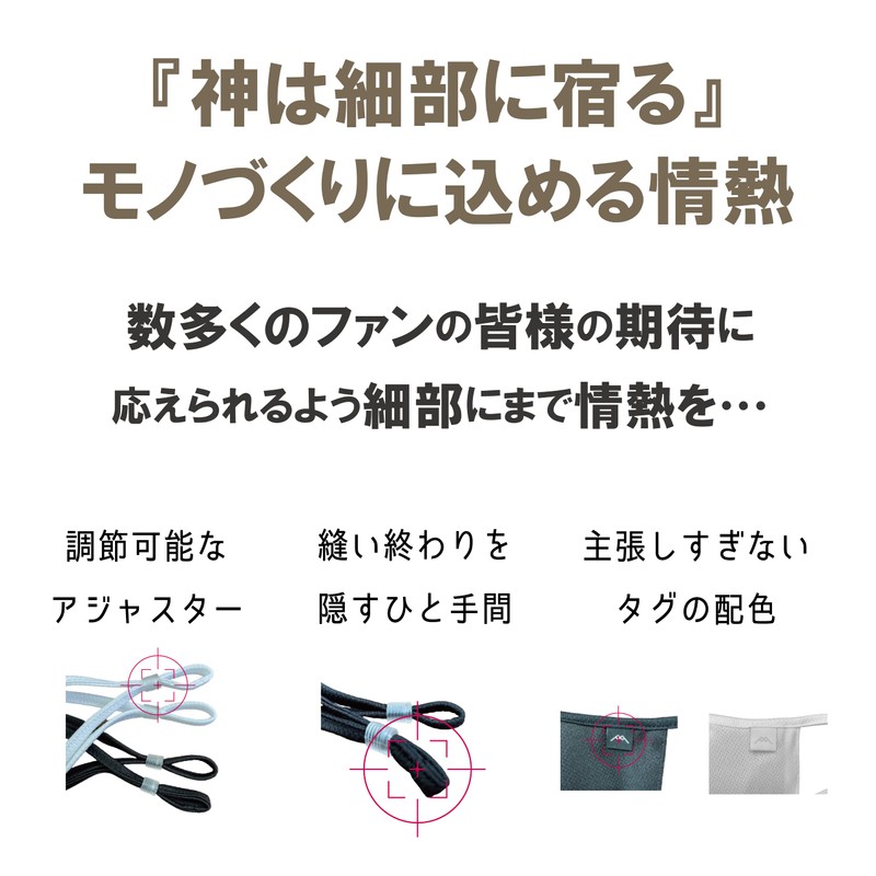 - 吸水速乾メッシュ採用で、汗を吸い取り素早く乾きます。