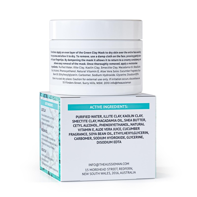 The Aussie Man, Green Clay Mask (50ML), Natural Vitamin E & Aloe Vera Mask, Supercharged French Green Clay, Deep Face Cleansing For Pores, Blackheads & Wrinkles, Moisturising & Hydrating Facial Mask, Purifying Skin Blemishes