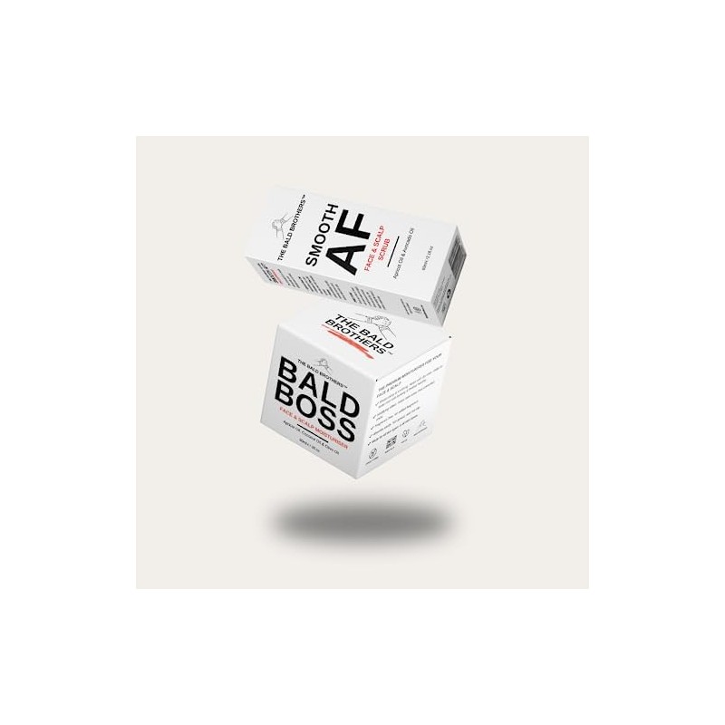 The Bald Brothers Bald Head Care Set is the perfect set for any bald person! Included are the products needed to ensure your scalp & face are taken care of and remain really healthy. The Bald Brothers strives to produce and sell the best bald head care products around, all whilst building a brand which champions bald people. Included in the Bald Head Care Set is our flagship moisturiser - The Bald Boss. And our new face & scalp scrub - The Smooth AF.