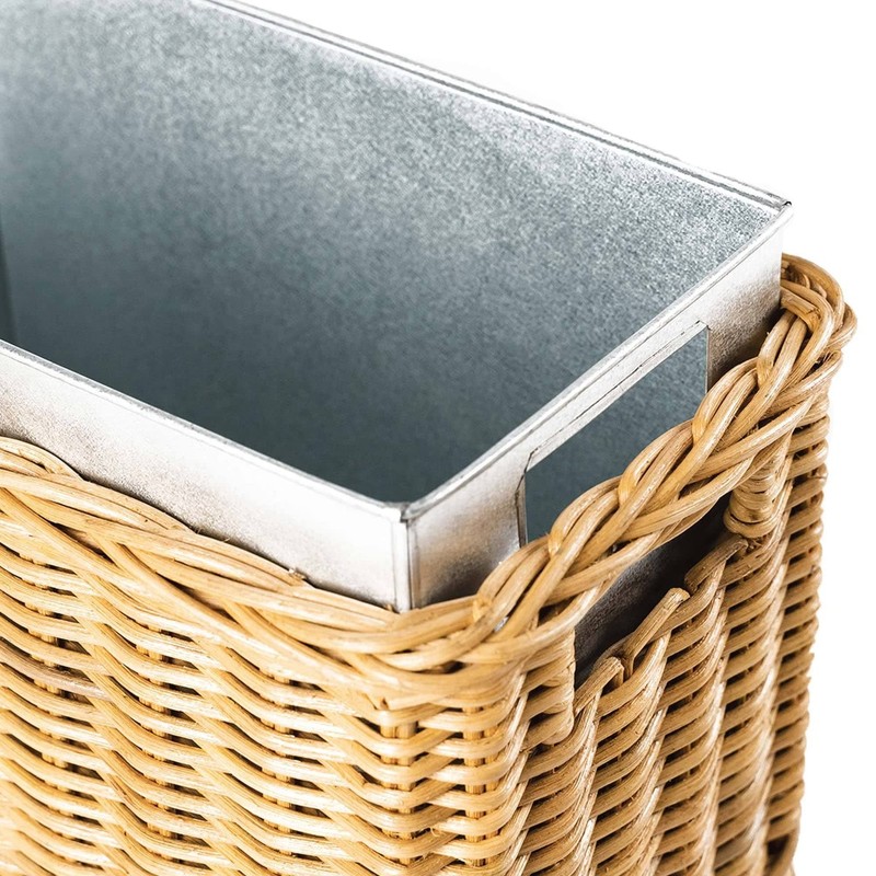The Basket Lady Large Rectangular Wicker Waste Basket with Metal Liner, 14.5 in L x 9 in W x 18 in H, Sandstone