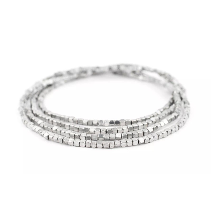 These classically simple and chic antique silver cube beads are just what you're looking for! These handmade beads are often used as a neutral spacer in jewelry designs and also often make for a great accent piece in necklaces and bracelets. Each artisan bead strand measures in at about 24" in length. Each individual bead approximately measures in at 3 x 3mm and roughly has a 2mm stringing hole. Multiple strands pictured. Each strand sold individually. With such great versatility and an abundance of uses you really can't go wrong with these antique silver beads!
