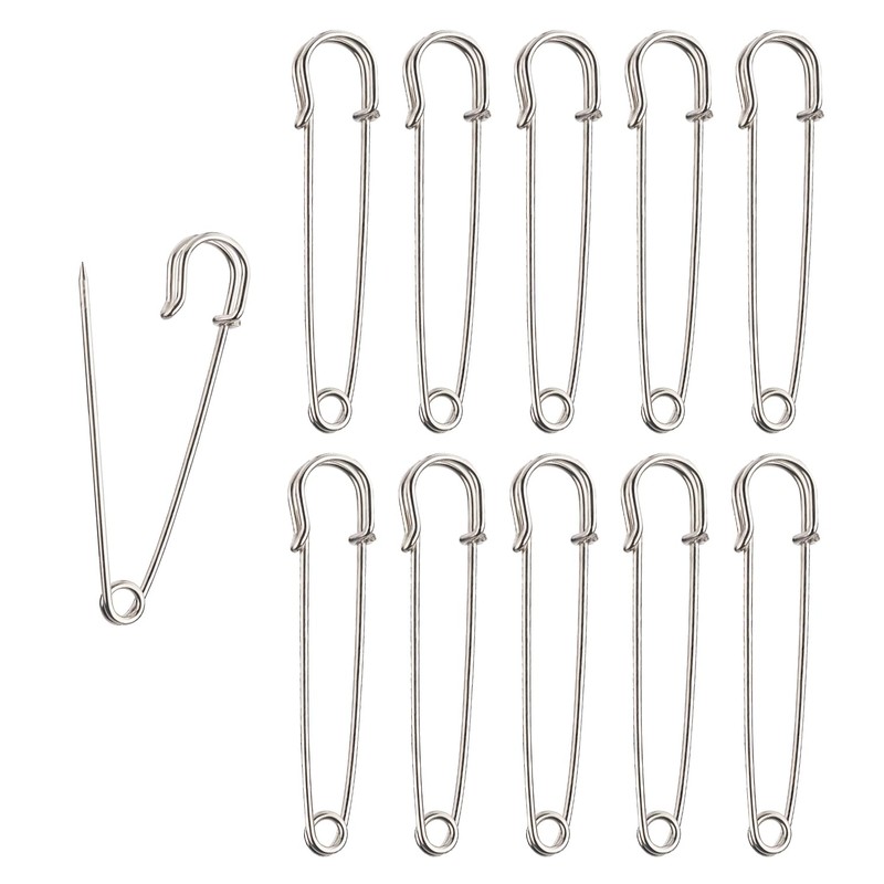 The Bead Shop Kilt Pins | Large Safety Pins 64mm (Pack of 10) Heavy Duty Rubber Cloth Pins