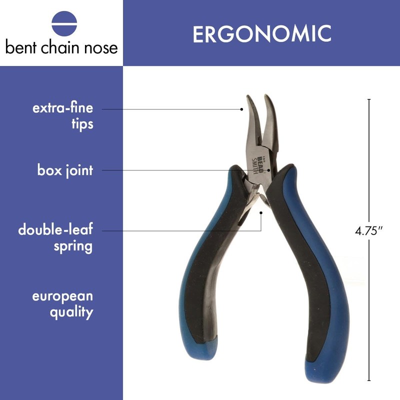 The Beadsmith Ergonomic Curved Chain Pliers 127mm Comfortable Ergonomic Handle Double Leaf Springs and Polished Steel Head Extra Fine Tips Precise to Medium Work