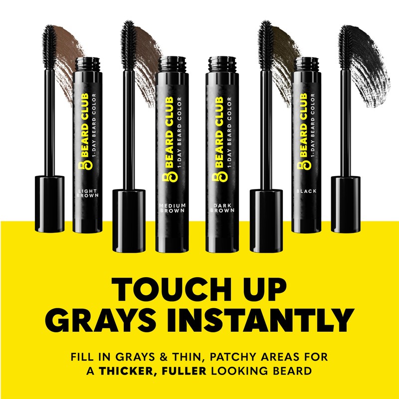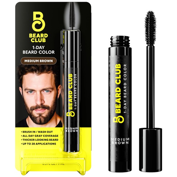 The Beard Club 1 Day Temporary Beard Dye for Men - Medium Brown Beard, Mustache & Eyebrow Color for a Fuller, Well-Defined Look, Water & Sweat Resistant, Up to 30 Applications, 0.3 fl oz