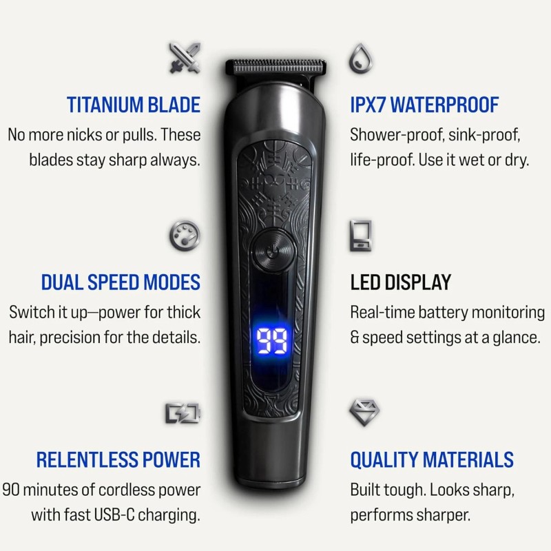 The Beard Struggle Varangian Beard Trimmer, 6-in-1 Cordless Waterproof Clipper