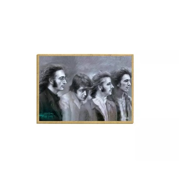 The Beatles (Blk & Wht) Ringo John... Wood Kitchen Fridge Magnet 2.5 x 3.5 B86