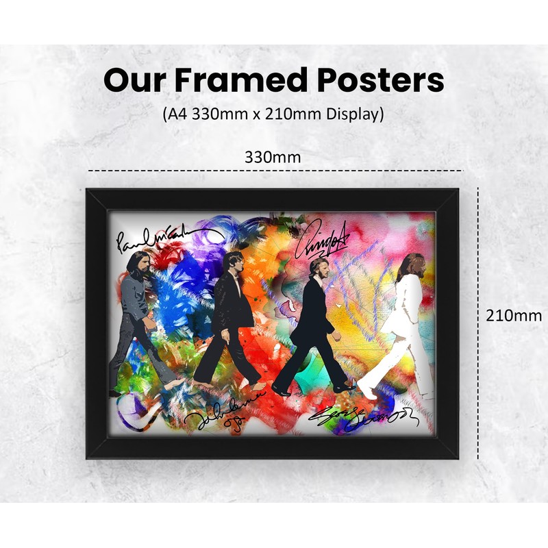 The Beatles Signed Poster Print - Limited Edition Autograph Fan Gift – Collectible Memorabilia Merchandise (Framed A4 (30x21cm))