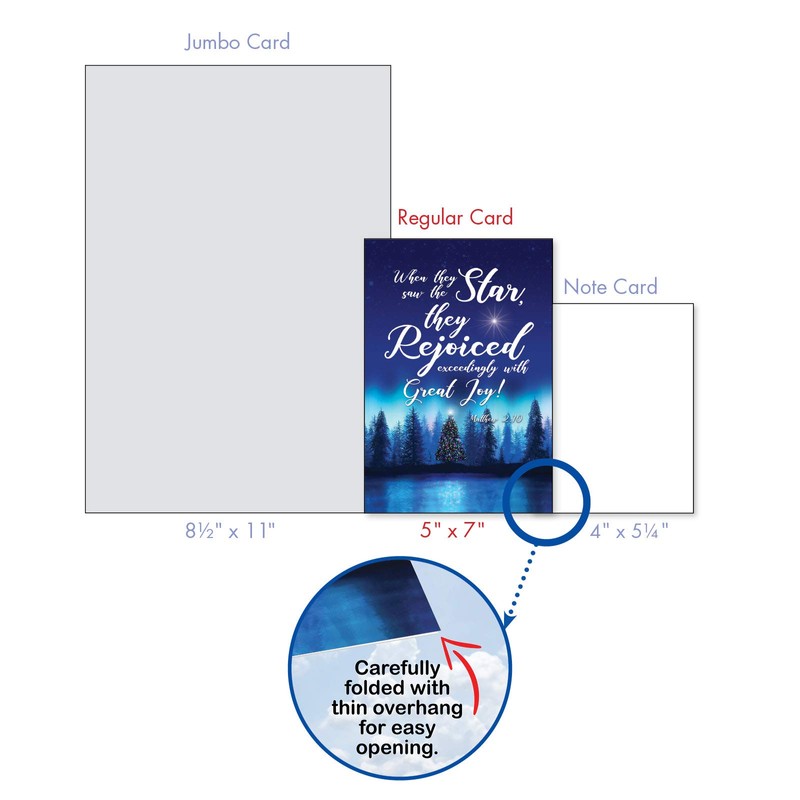 - Each greeting card has a glossy cover page that is slightly longer than the back for easy opening