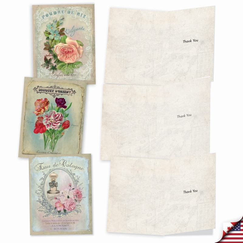 • INSIDE GREETING: "Thank You" COVER - Featuring Vintage Turn of the Century French Perfume Advertisements