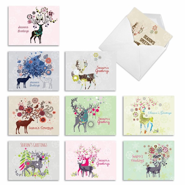 The Best Card Company - 10 Blank Merry Christmas Note Cards (4 x 5.12 Inch) - Boxed Holiday Notecards with Envelopes - Dandy Reindeer M2938SGB