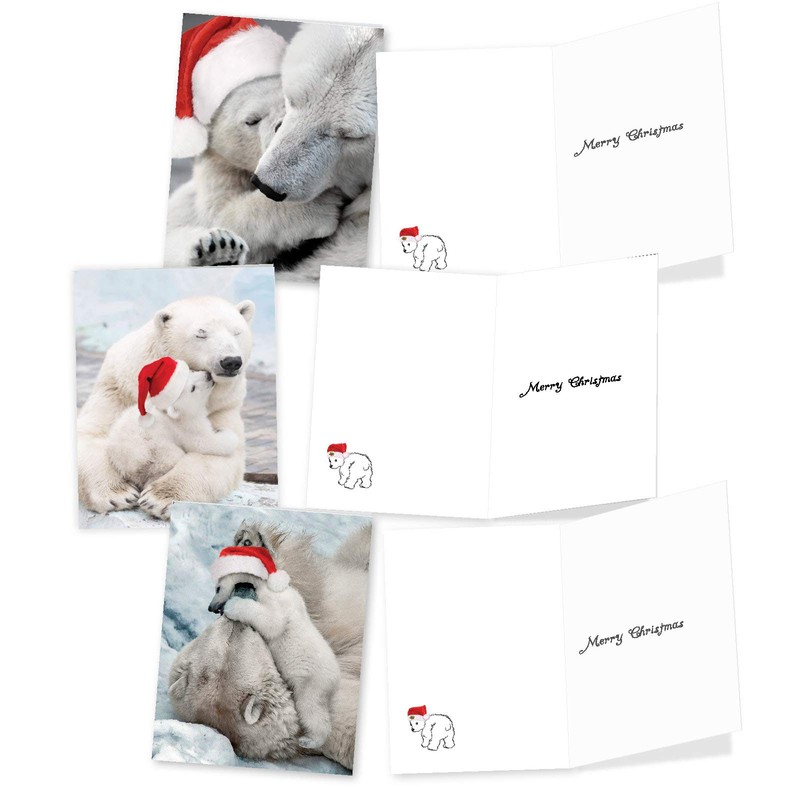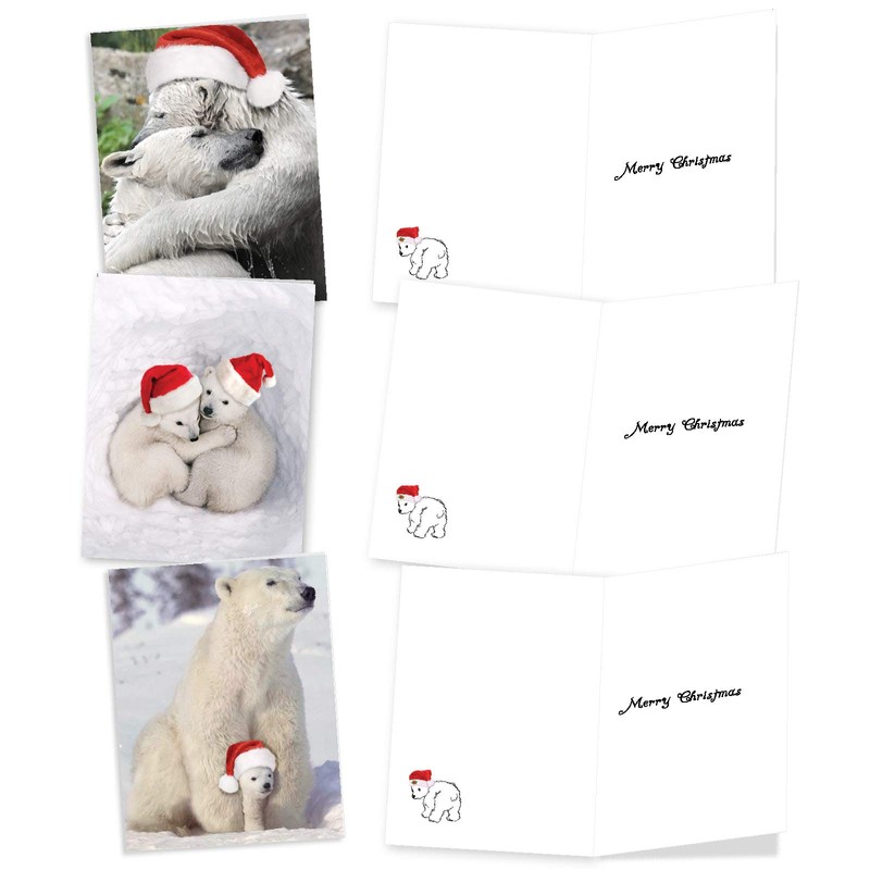 - Inside Greetings Say: Merry Christmas - Covers Show: Hugging polar bears in Santa hats