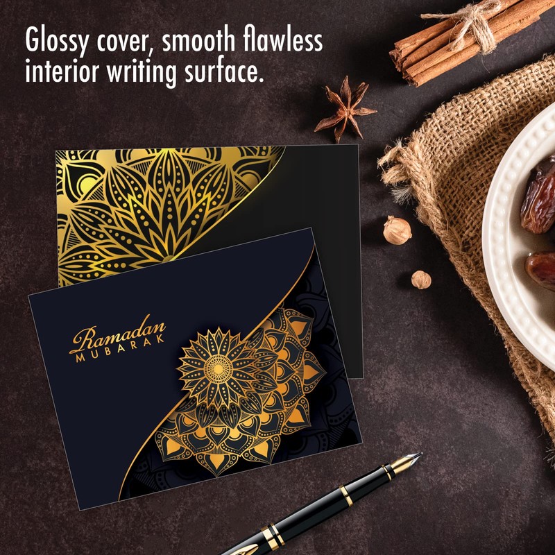 - USE: stationery for writing Ramadan wishes. Card's cover pages are printed on coated stock and have a high gloss finish, while the cards interior pages are uncoated for a smooth and flawless writing surface. Perfect for men and women, husbands and wives alike.