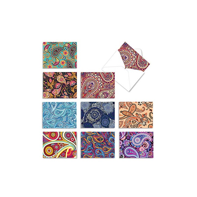The Best Card Company - Box of 10 All Occasion Note Cards (4 x 5.12 Inch) - Blank Assorted Bulk Set - Crazy For Paisley M6570OCB