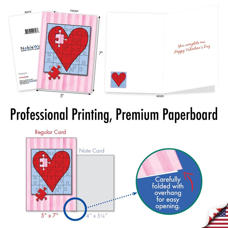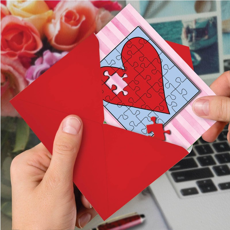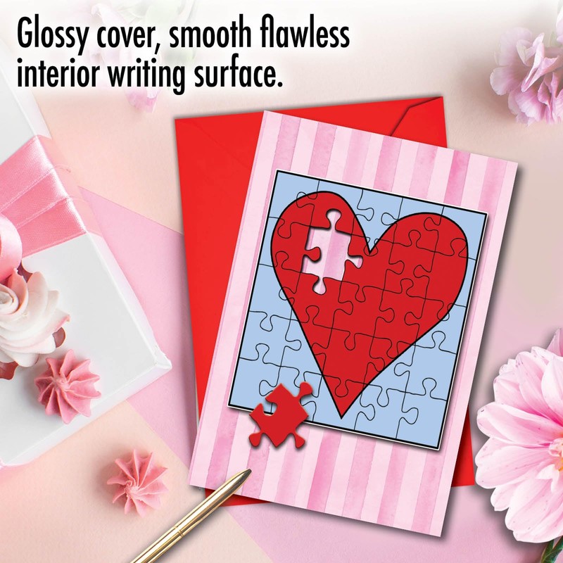 The Best Card Company Jigsaw Hearts - Valentine's Day Greeting Card with Envelope (4.63 x 6.75 Inch) - Incomplete Love Puzzle C3181JVDG