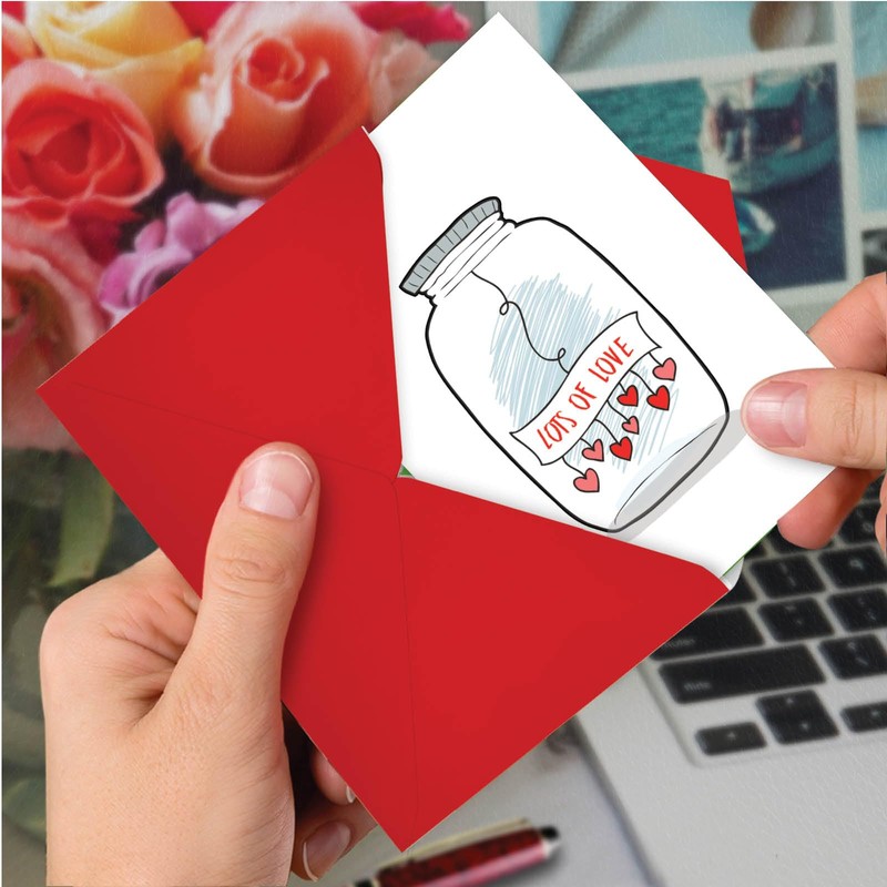 The Best Card Company Love Jar - Valentine's Day Greeting Card with Envelope (4.63 x 6.75 Inch) - Hanging Hearts C3183IVDG