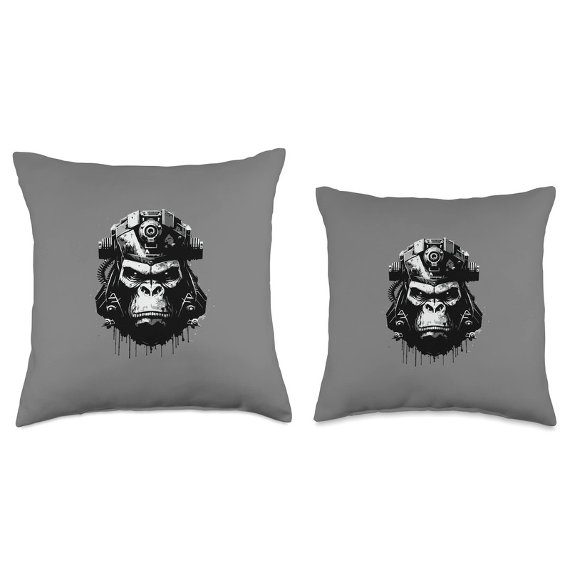 The Black Goat Robot Sci-Fi Skull Science Fiction Android Monkey Bot Throw Pillow, 16x16, Multicolor