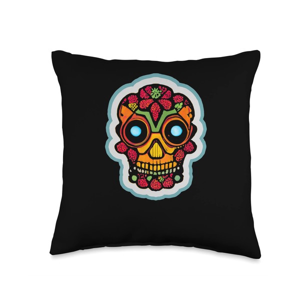 The Black Goat Sugar Skull Hand Illustration Raspberry Calavera Throw Pillow,...