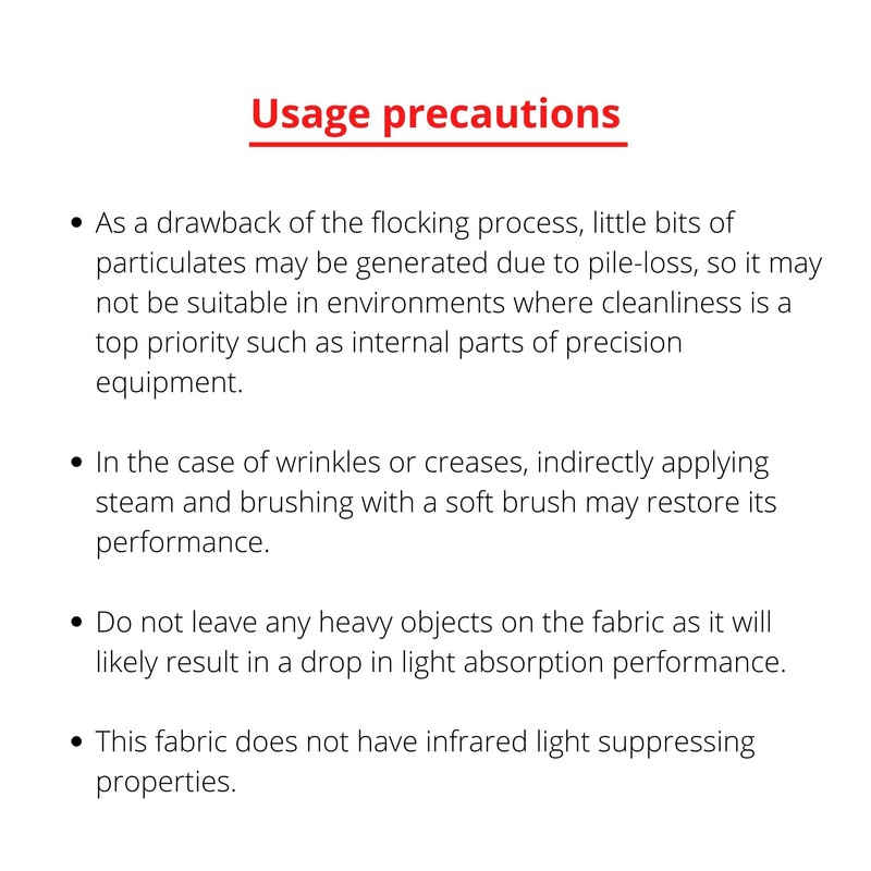 - WORLD'S BLACKEST FABRIC - This Rayon-based visible light absorbing flocked sheet achieves a world-class light absorption rate of 99.9% in the visible light spectrum, making it not only The Black Markets's blackest product but also the World's Blackest Fabric!