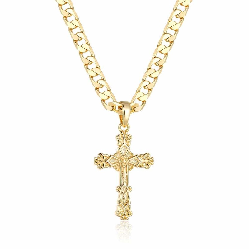 THE BLING KING New Gold-Plated Filigree Cross Pendant with 22-Inch 4mm Cuban Chain – Elegant Religious Necklace