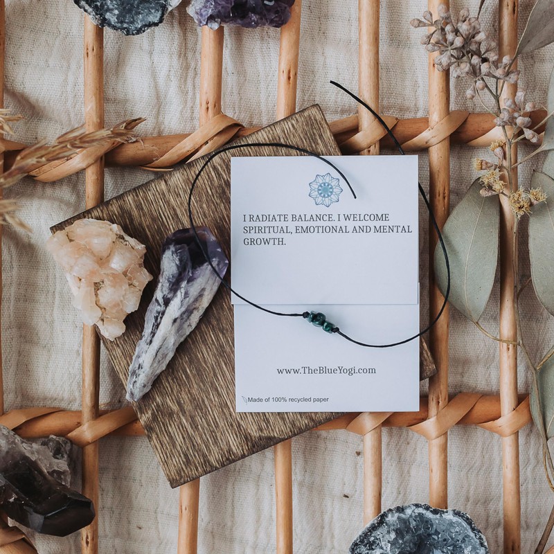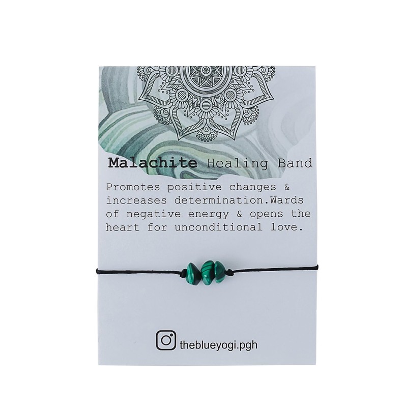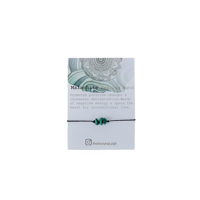 The Blue Yogi Healing band -2 in 1 protection Bracelet/Anklet with an affirmation- Tie Closure (Malachite)