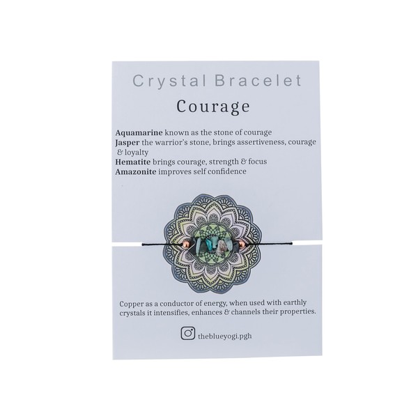 Each Bracelet comes with a card with a Mandala art and healing properties of the crystal (as shown in photo) Card Size: 3.5 x 5". Each Card comes with a Affirmation at the back. Each Bracelet is handcrafted and the gemstones are natural & unique so the order, size & shape of the gemstones will differ.
