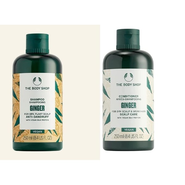 - The Body Shop Ginger Shampoo Conditioner Set 250ml each Vegan new formula itchy scalp anti dandruff