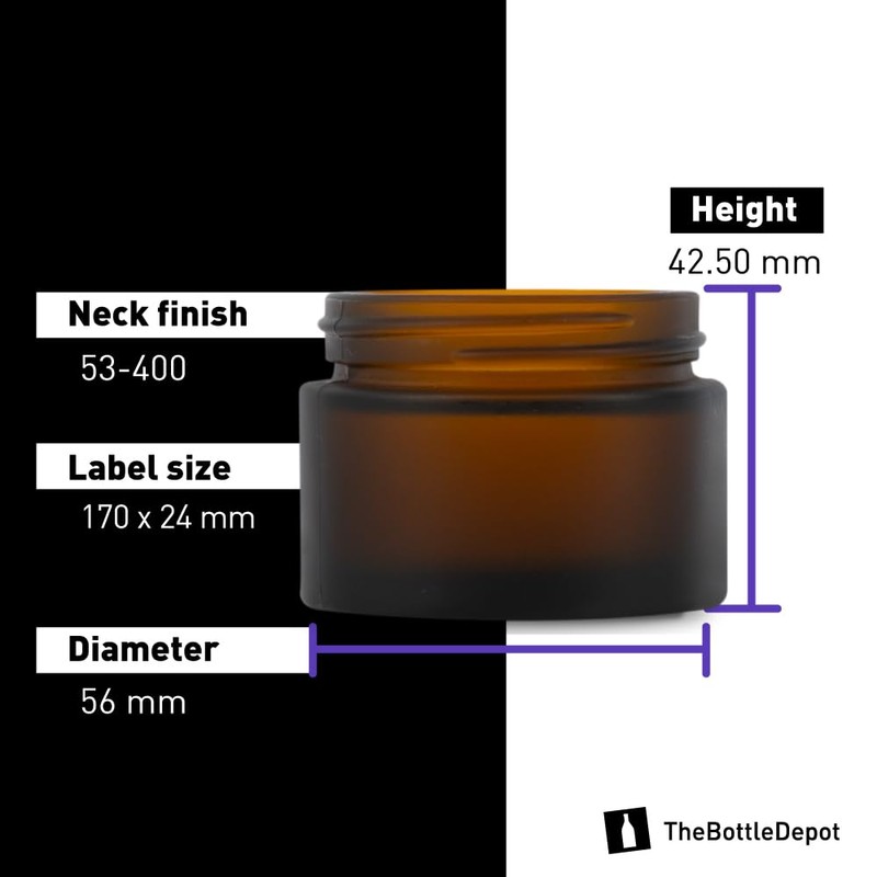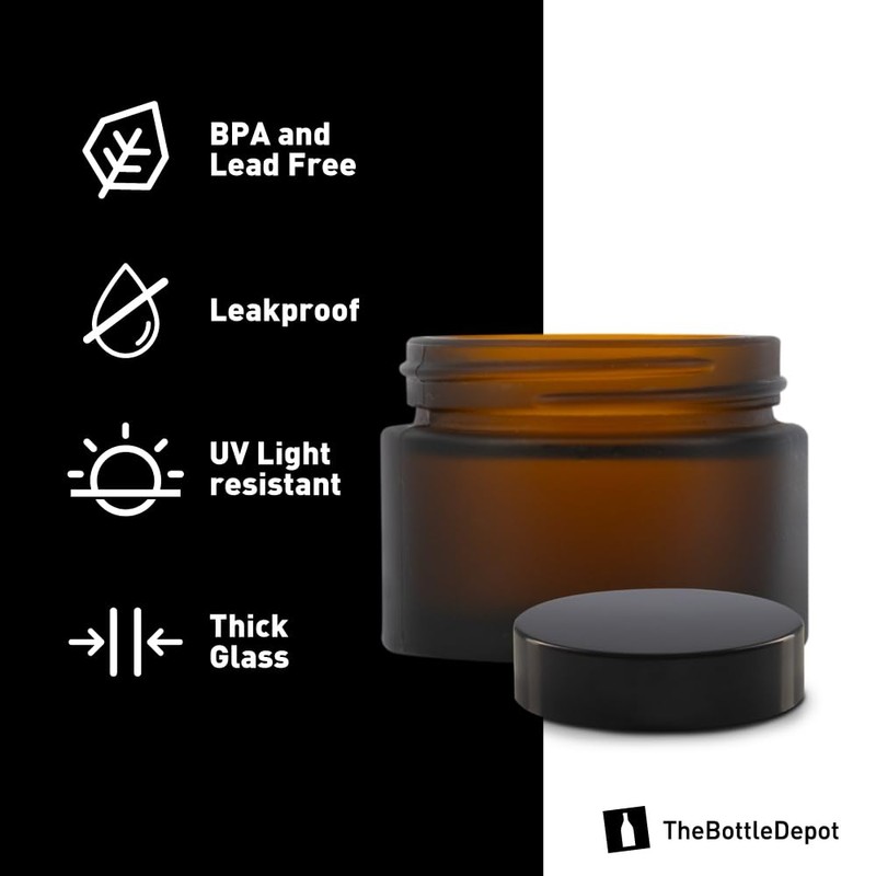 The Bottle Depot - 24 Pack - 1.7 oz Glass Jars with Black Lids - Amber Frosted - 53-400 Neck Finish - UV Rays Protection