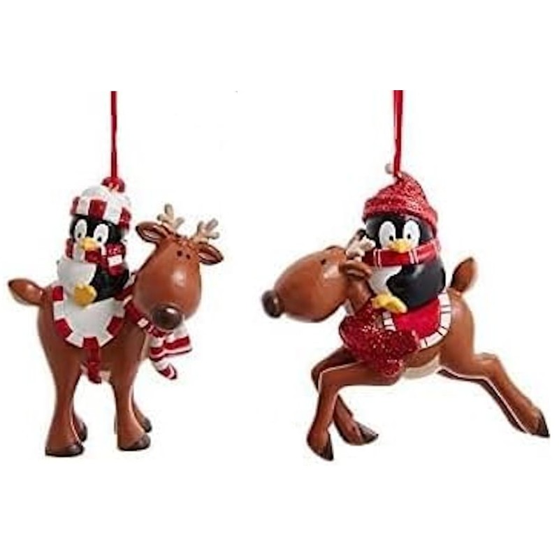 The Bridge Collection 4" Festive Penguin and Reindeer Christmas Ornaments, Set of 2 - Cheerful Resin Holiday Animal Decor
