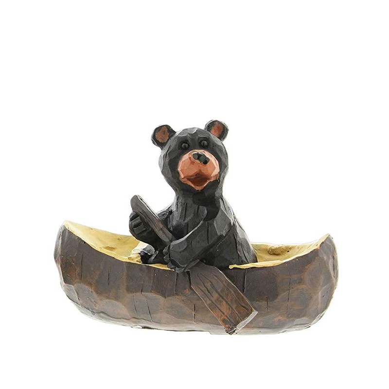 - Decorative black bear figurine depicts a bear canoeing - Perfect for lovers of the outdoors