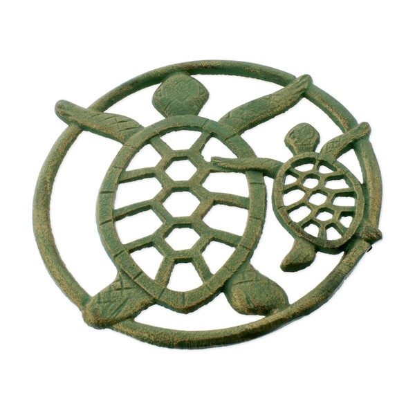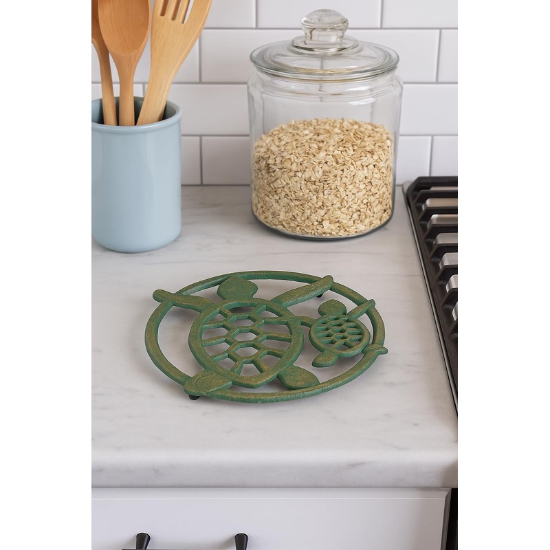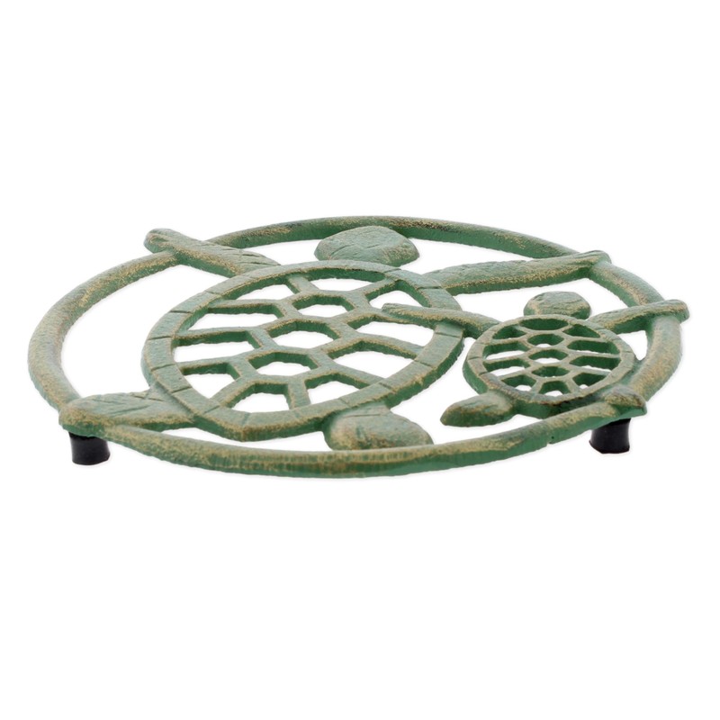 The Bridge Collection Decorative Cast Iron Sea Turtle Trivet - Coastal Kitchen Accent with Ocean Theme Design - Heavy Duty Metal Trivet for Hot Pots, Pans, and Dishes