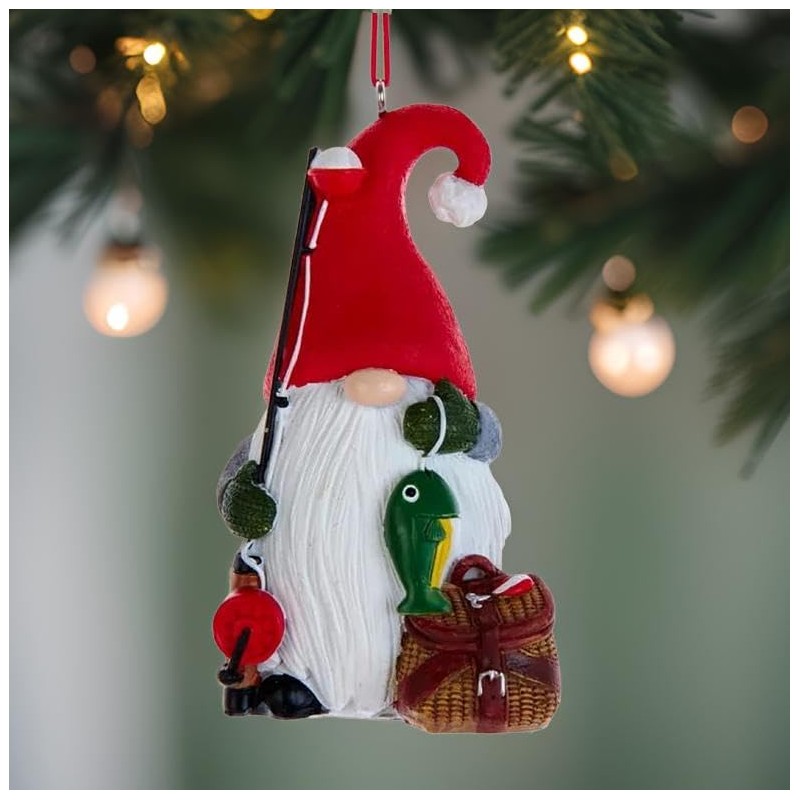 - GNOME SANTA FISHERMAN: Features a Gnome Santa with a long white beard, holding a fishing pole with a fish on the line and a fishing bag.