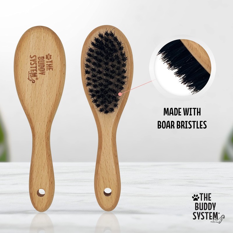 The Buddy System Cat Brush with Boar Bristle and Wooden Handle, Professional Grade Daily Grooming Hairbrush, Reduce Shedding, Soft Hair and Healthy Shine (1 Pack)