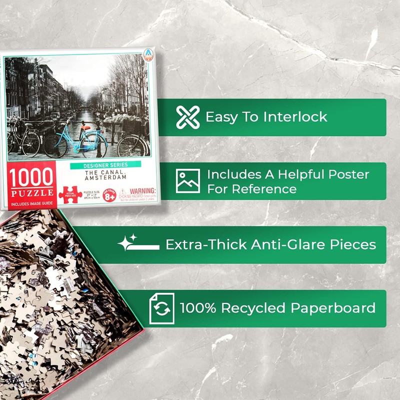 The Canal, Amsterdam 1000 Piece Puzzle for Adults & Kids | 27 x 20 Inch Jigsaw Puzzles Game with Extra Thick Pieces That Fit Together Easily | Made from Recycled Paper | Bonus Poster Included